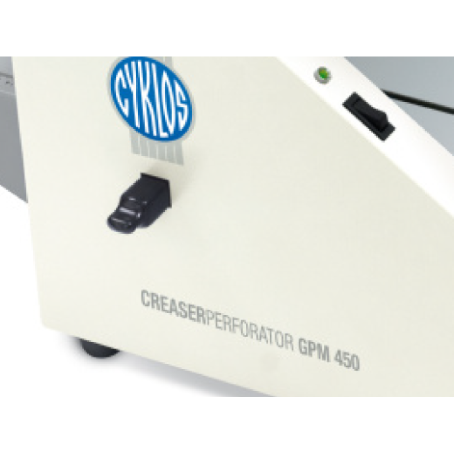 CYKLOS GPM 450 е професионална електрическа машина за биговане и перфориране, предназначена за печатници, копирни центрове и офиси с голям документооборот. Машината осигурява бързо, прецизно и надеждно обработване на документи, брошури и дипляни.