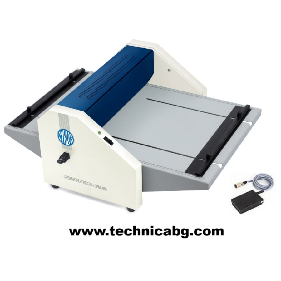 Професионална електрическа машина CYKLOS GPM 450 за биговане и перфориране. Бърза, прецизна и надеждна за офиси, печатници и копирни центрове.