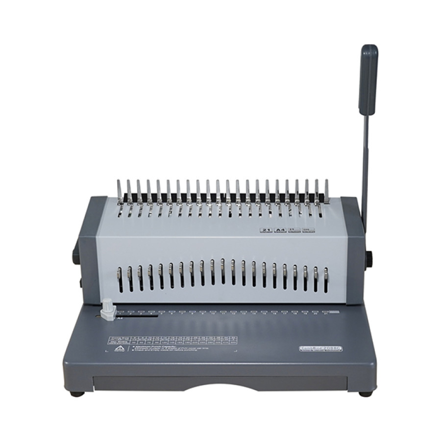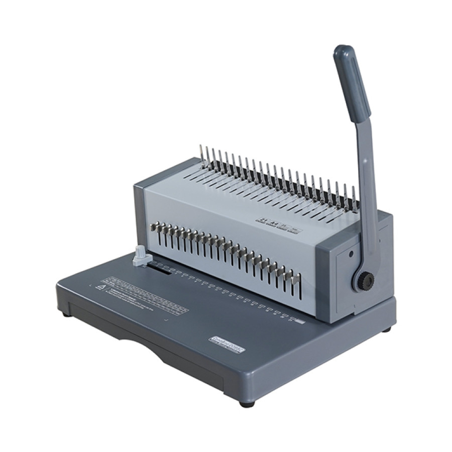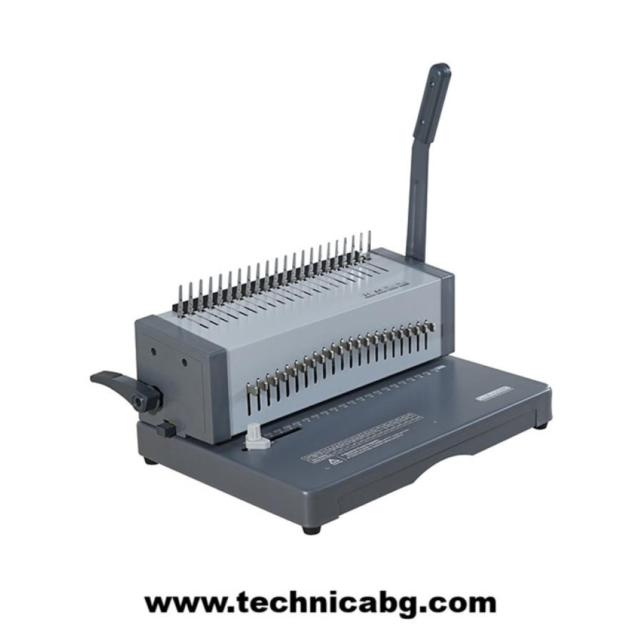 - машина за подвързване с пластмасова спирала 21 ринга - стъпка 9/16''- дължина на перфорация: 330 m..